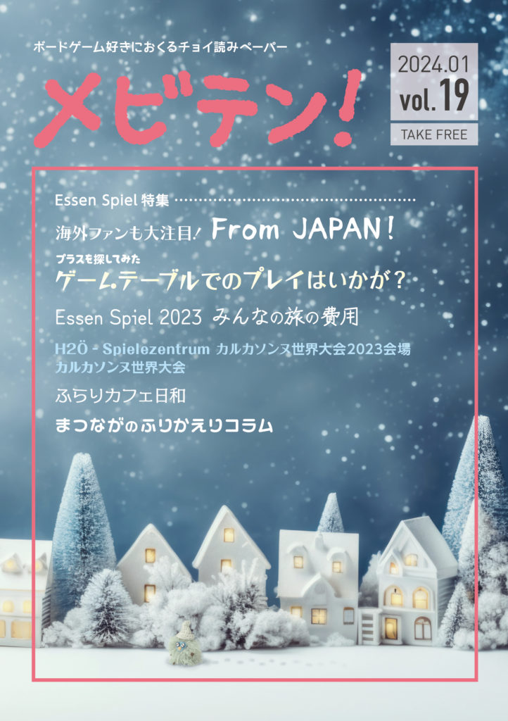 目次: Essen Spiel 特集海外ファンも大注目! From JAPAN!プラスを探してみたEssen Spiel 2023 みんなの旅の費用H2Ö – Spielezentrum カルカソンヌ世界大会2023会場カルカソンヌ世界大会 ふらりカフェ日和 まつながのふりかえりコラム PDFで閲覧する HTML PDF